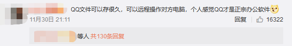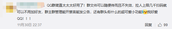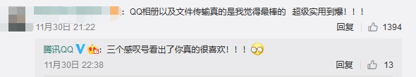 11月30日晚,腾讯QQ官方微博带上了话题#QQ为什么没有被微信淘汰#发文称,“哎哟?都在给鹅表白?那就来说说最爱QQ的哪一个功能吧。”