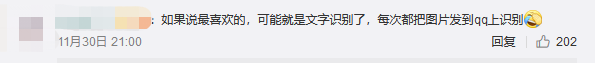 还有网友说最喜欢的功能是文字识别,每次都把图片发到QQ上识别。