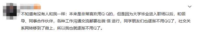同时,也有不少网友发现,渐渐地,用QQ的人越来越少,身边的人基本都在用微信了。