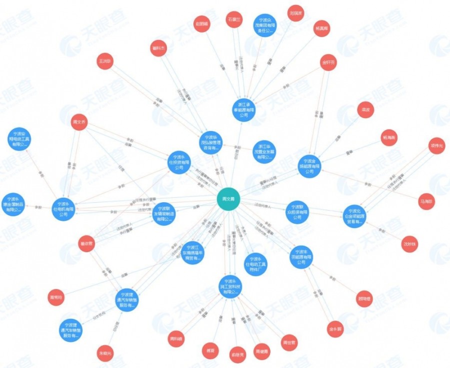 周文勇涉嫌走私废物罪被抓之前,其商业版图颇具规模。据天眼查APP显示,周文勇一共参股、控股13家企业,涉猎机电、能源、石油化工、汽车销售、投资、担保、管理咨询等诸多领域,主要集中在宁波鄞州区和海曙区。