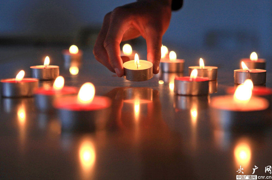 3月9日,全国各地用烛光祈福马航MH370客机上的乘客,希望他们平安归来。图据央广网