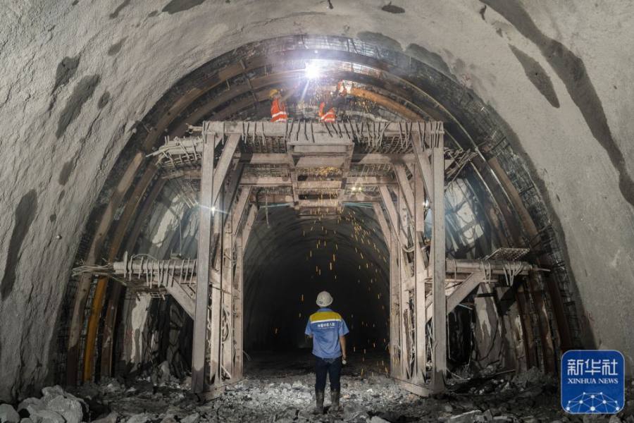 △2020年9月21日,工人在老挝乌多姆赛省孟雅县的中老铁路福格村隧道建设现场施工。