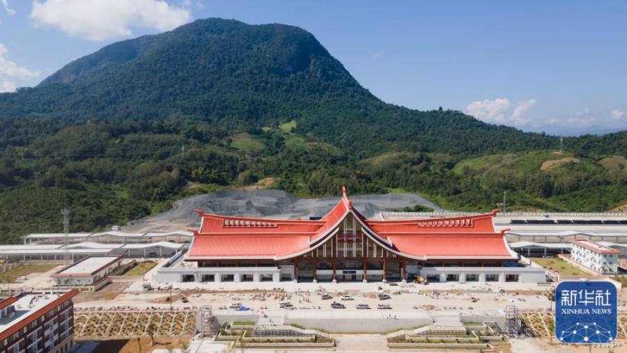 △2021年9月11日在云南西双版纳傣族自治州勐腊县境内拍摄的中老铁路。