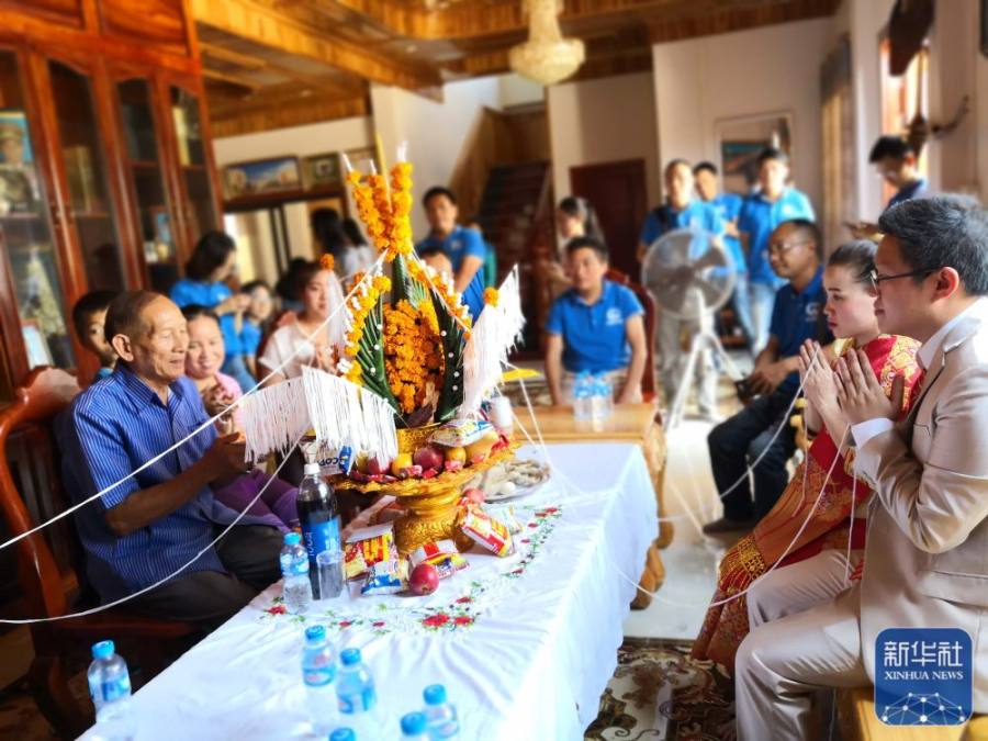△2018年5月20日,在老挝万象,中铁二局中老铁路项目部职工熊应豪与老挝姑娘王妮举办订婚仪式。两人在中老铁路参建过程中相识、相知、相爱。
