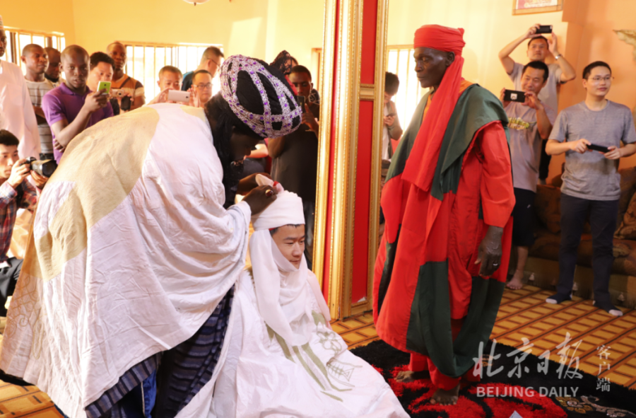 这场荣耀的尼日利亚部落传统仪式,通过互联网向全球直播。在阿布贾工作将近10年,面对非洲朋友授予的至高荣誉,孔涛心里充满了光荣、喜悦、忐忑的复杂情绪。不过,当天在仪式开始前,包括他在内的所有中方参与人员,最主要的心情还是好奇。