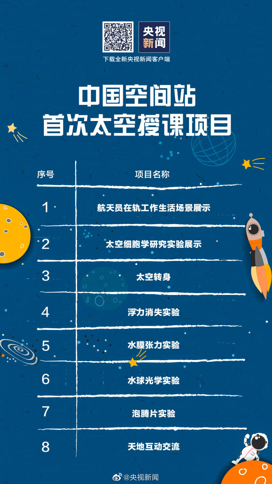 中国航天员真诚邀请广大青少年在地面同步尝试开展相关实验,从天地差异中感知宇宙的奥秘、体验探索的乐趣。