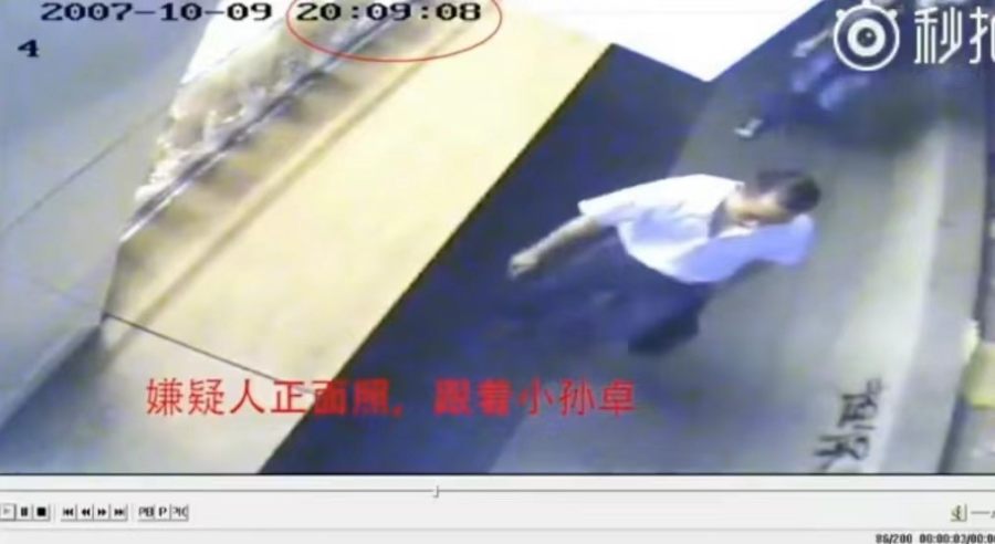 监控视频显示,2007年10月9日晚上7点多,孙卓在包子铺附近花坛独自玩耍,一个身穿白衬衣黑长裤,脚穿棕色皮鞋,手提皮包的中年男子靠近他,把一个玩具车拿出来,给孙卓玩。后来男子哄骗他到超市门口又买了吃的,之后二人消失在监控里。