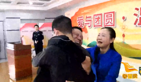 直播画面显示,认亲现场,孙海洋夫妇紧紧抱着儿子,痛哭不止。