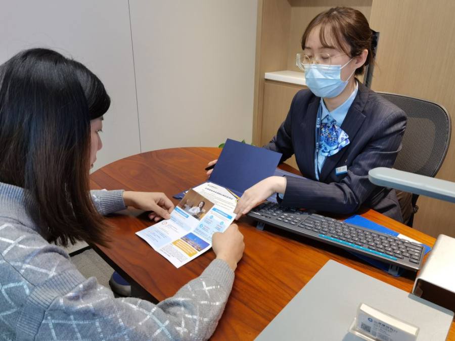 深圳市民蓝女士6日在建行深圳市分行营业部为母亲购买养老理财试点产品。 新华社记者 吴燕婷 摄