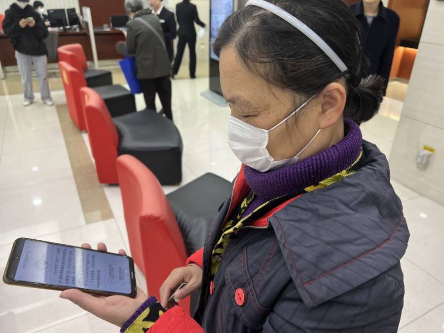 6日上午,63岁武汉市民童女士在工行武汉分行水果湖支行通过手机银行认购养老理财试点产品。 新华社记者 邓楠 摄