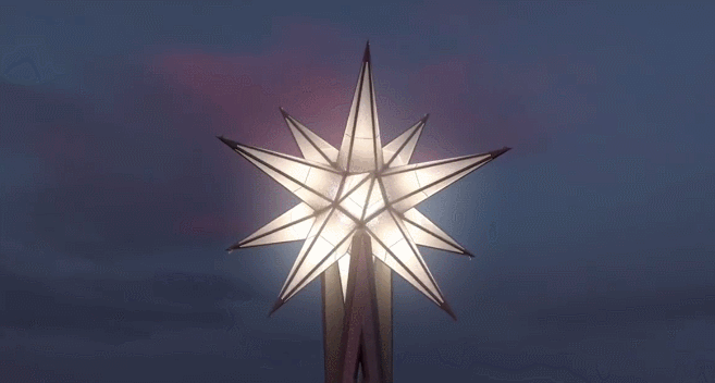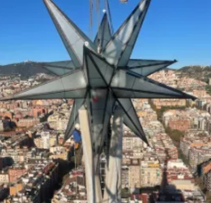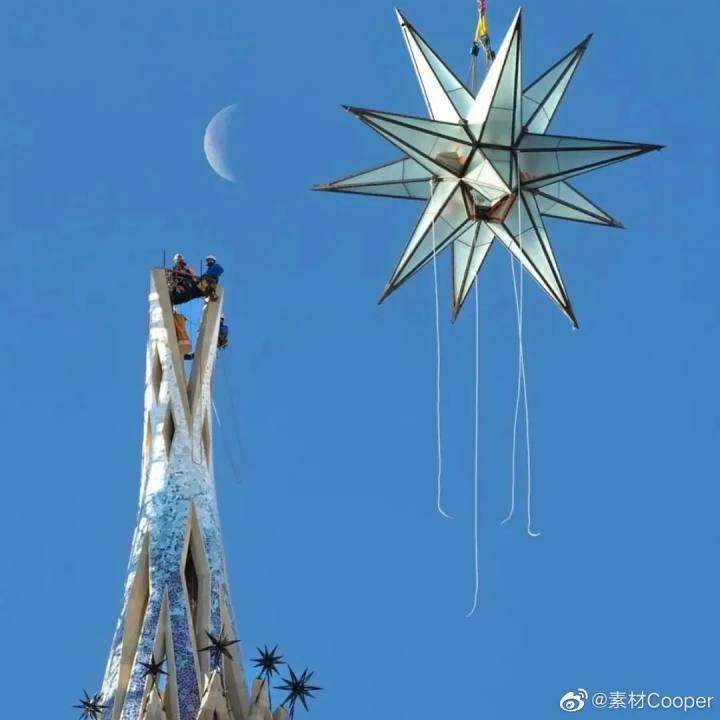 点亮的这颗“伯利恒之星”,是用钢化玻璃和钢结构制作,重达5.5吨,放置在高迪设计的圣家堂第二高的玛丽亚塔上。圣家堂基金会声明中说:“一颗伟大的明星将改变巴塞罗那的天际线,带来光明和希望。”