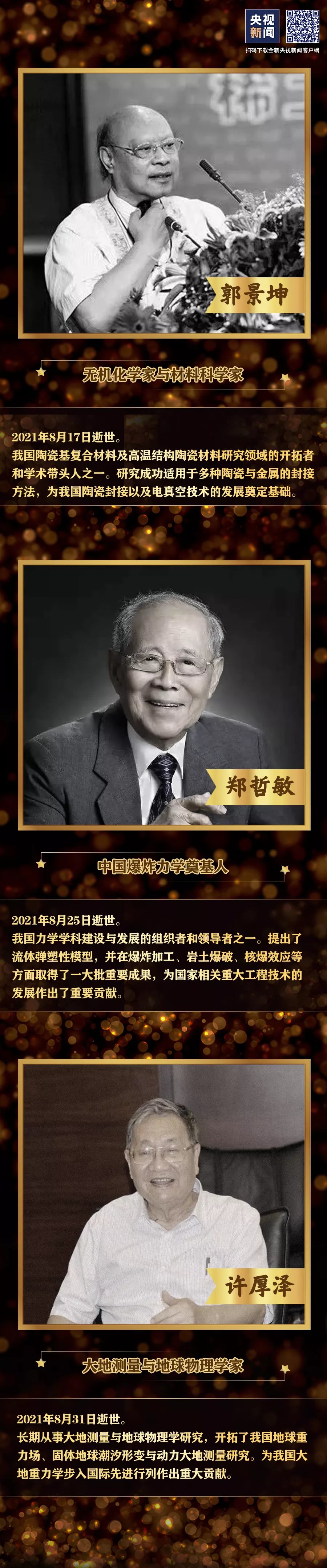 即将过去的2021年,我国已有27位院士相继离我们而去。他们一生呕心沥血,不懈追寻,奉献祖国。斯人已逝,但精神永存。
