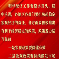 稳,首先是宏观政策要稳。各方面要积极推出有利于经济稳定的政策,政策发力适当靠前。积极的财政政策要提升效能,更加注重精准、可持续。稳健的货币政策要灵活适度,保持流动性合理充裕。要提高宏观调控的前瞻性针对性,通过各项措施使经济运行在合理区间。