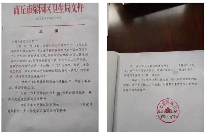 记者了解到,商丘市梁园区卫生局(现为商丘市梁园区卫健委)曾于2011年2月7日发布一份红头文件,称该局接到被盗事件报告后立即启动了问责机制,通过调查发现:商丘市妇幼保健院安全保卫措施存在薄弱环节,领导重视程度不够,工作人员工作不认真,医院内部管理有待进一步加强。处理情况包括对该院院长、副院长等人进行通报批评,要求写出深刻书面检查,免去该院保健科科长职务,保健科管理员调离岗位等。