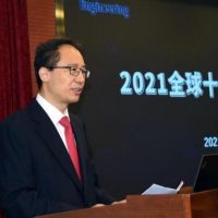 中国工程院院士、中国工程院院刊执行主编陈建峰发布“2021年度全球十大工程成就”评选结果。 中新社记者 孙自法 摄