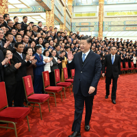 下午3时10分,习近平等来到人民大会堂金色大厅,全场响起热烈掌声。习近平等走到代表们中间,同大家亲切交流并合影留念。