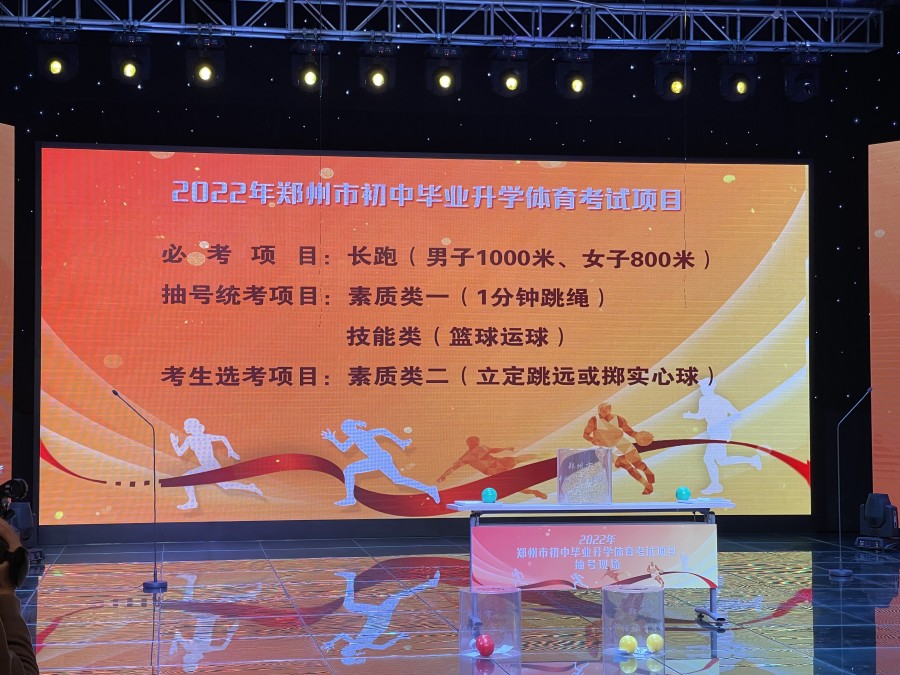 17日上午,郑州市2022年初中毕业升学体育考试统考项目现场抽号举行,确定了中招体育考试项目。其中,必考项目为长跑,统考项目为1分钟跳绳、篮球运球,选考项目为掷实心球或立定跳远任选其一。