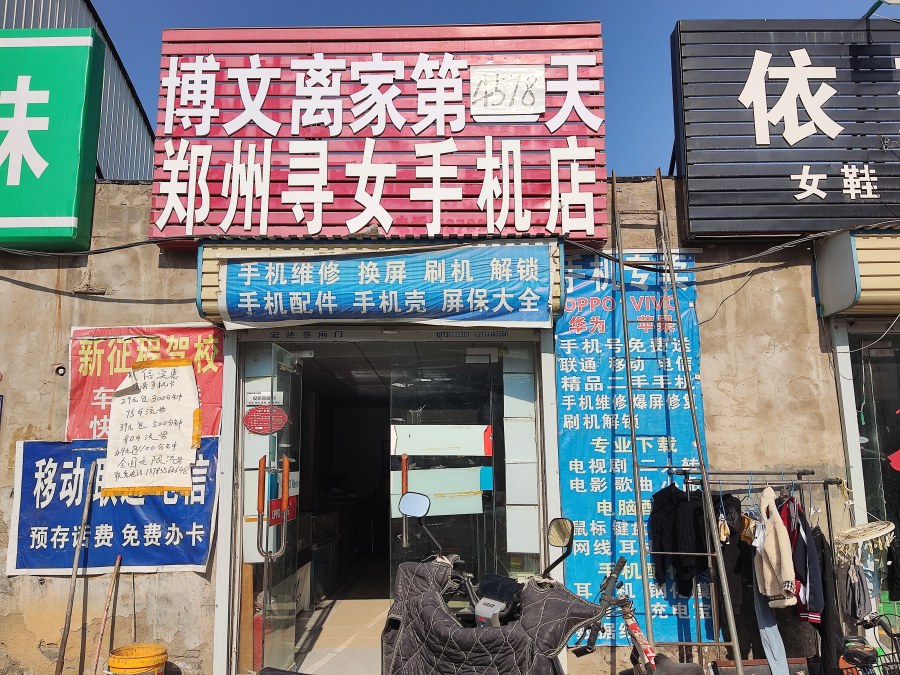 赫东峰和卢丽的寻女手机店位于郑州市西陈庄村,主营手机销售、维修及手机配件售卖。这里距离女儿走失的老店约五公里。