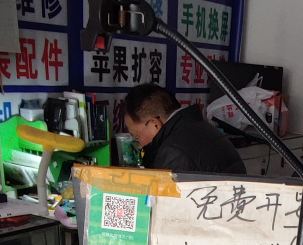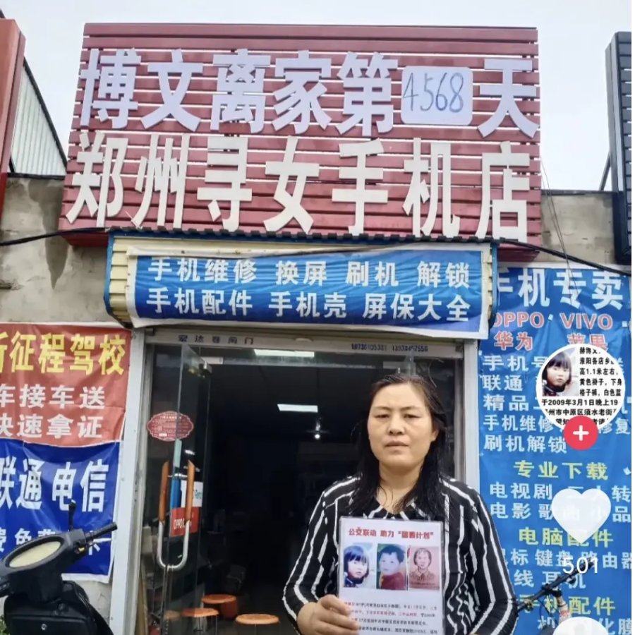 夫妻俩守着手机店,一边做生意一边直播寻女,遇到十八九岁的孩子就忍不住多问几句,希望能得到关于博文的线索。