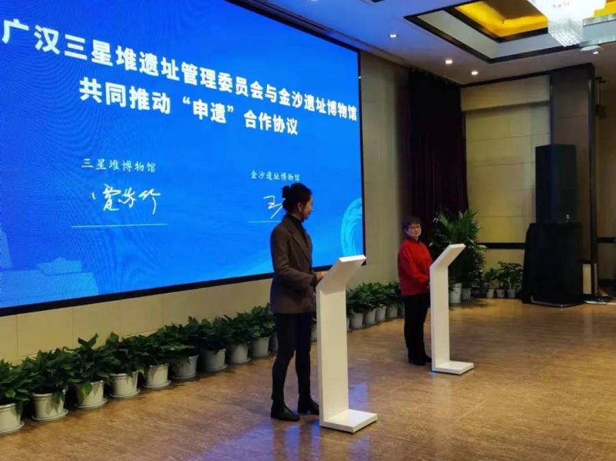 会上,三星堆遗址管委会与金沙遗址博物馆签署了《三星堆遗址与金沙遗址联合申遗合作协议》,双方将就遗产申报与研究、陈列展览、宣传推广等方面全面展开合作。