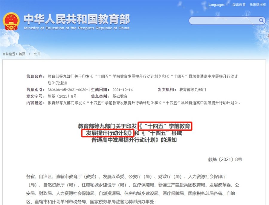 12月16日,教育部等九部门发布《“十四五”学前教育发展提升行动计划》,要求加大不规范办园行为治理力度,对出现虐童、体罚及变相体罚等严重师德失范行为的幼儿园,年检实行一票否决,并将视为办学不合格进行限期整改,并对涉事教职工、管理者和举办者依法追究法律责任。(12月17日《新京报》)。