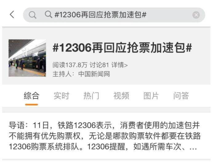 抢票过程中,使用加速包真的有用吗?对此,铁路12306表示,消费者使用的加速包并不能拥有优先购票权,无论是哪款购票软件都要在铁路12306购票系统排队。12306提醒,如遇所需车次、席别无票,可在线排队候补。当对应的车次、席别有退票时,系统将自动购买车票。