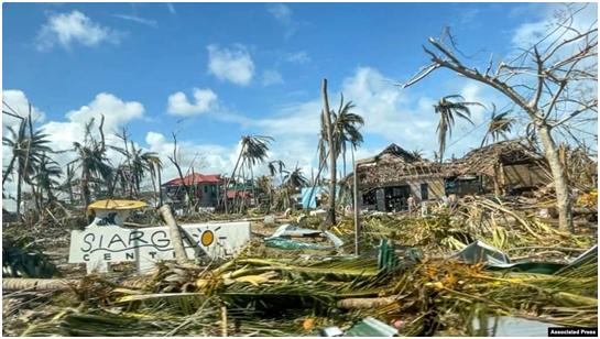 而在临近锡亚高岛和迪纳加特群岛的港口城市苏里高,台风过后,到处都是废墟,破碎的玻璃散落在街上。