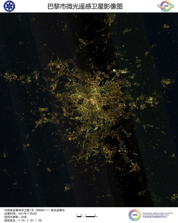 12月20日,可持续发展科学卫星1号(SDGSAT-1)首批影像在京正式发布,包括我国长三角、山东半岛、西藏纳木错、新疆阿克苏、北京、上海及法国巴黎等多个地区和城市的微光、多谱段与热红外成像仪影像。