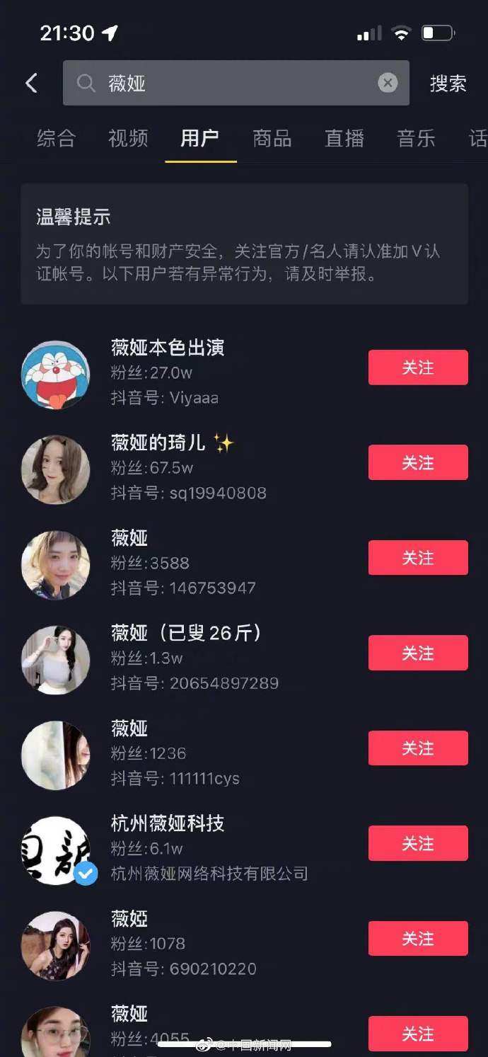 12月20日晚间,薇娅快手账号被封,已搜索不到。截至12月20日下午,薇娅快手账号粉丝达640多万,发布作品404个。另外,薇娅抖音、微博账号都已被封禁,均搜索不到。