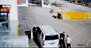 四名大汉驾车来到消防队门口
