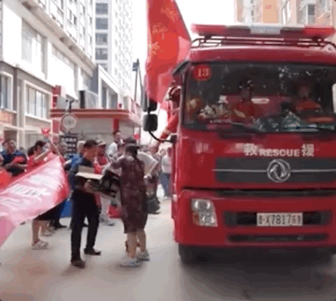 给从武汉驰援来的消防员