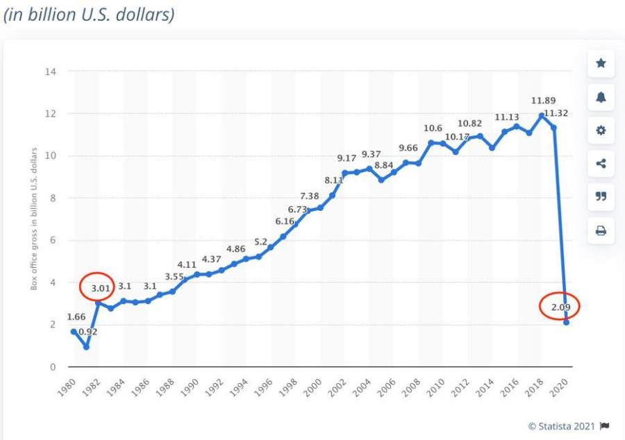 北美电影市场票房数据 图片来源:数据网站Statista截图