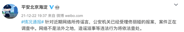 北京海淀警方:已经受理佟丽娅的报案