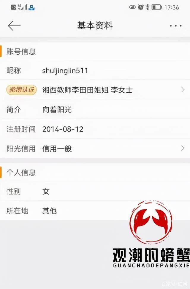 李田田姐姐微博截图。