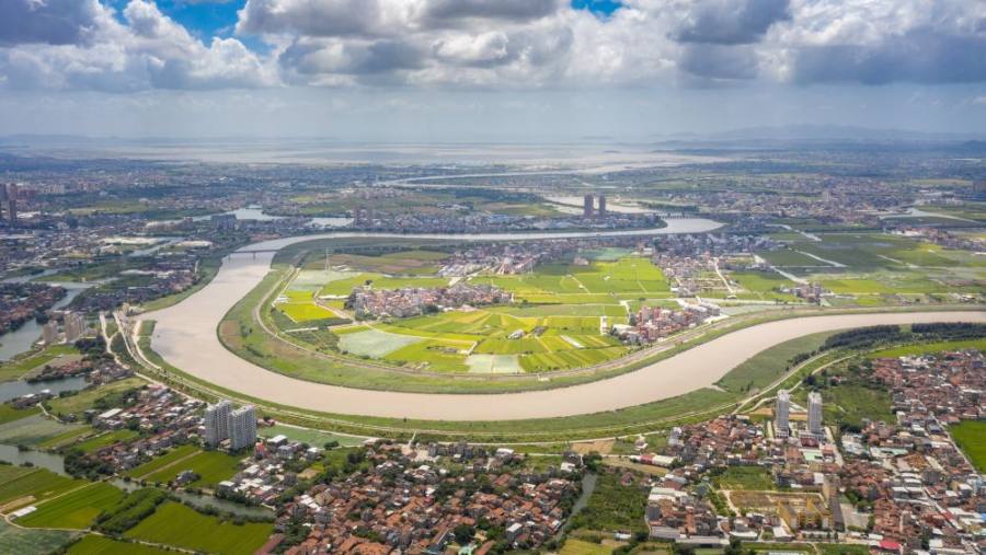 ↑城市“生态绿心”内部,300多万莆田人民的母亲河木兰溪缓缓流过(7月21日摄,无人机照片)。多年来,福建莆田用城市“留白”换来生态红利,在城区内保留了一片65平方公里的“生态绿心”,通过立法和规划措施加以保护,成为莆田生态文明建设的名片。