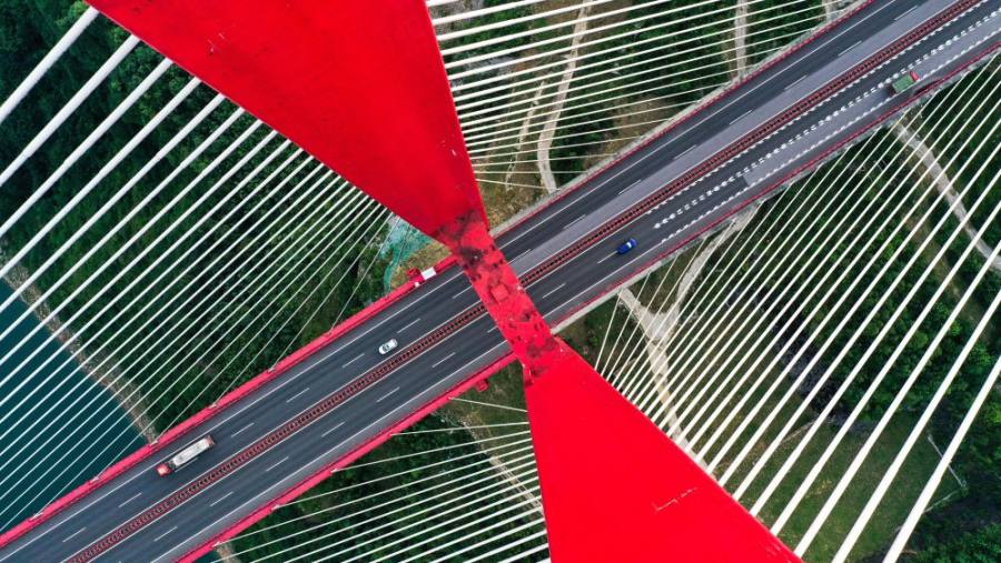 ↑这是贵州贵阳至黔西高速公路鸭池河大桥(7月23日摄,无人机照片)。