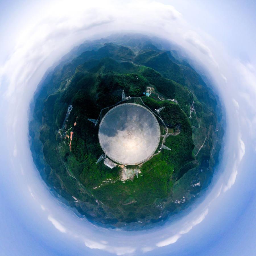 ↑3月28日拍摄的“中国天眼”全景(维护保养期间拍摄,无人机照片)。“中国天眼”是目前全球最大且最灵敏的射电望远镜,极大拓展了人类观察宇宙视野的极限。