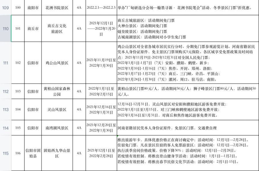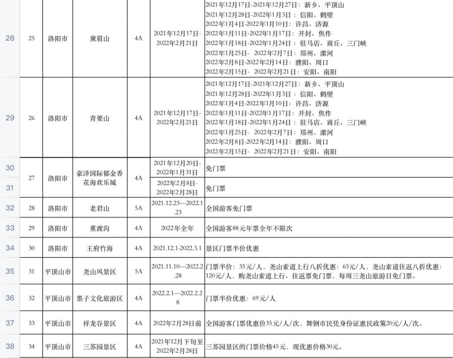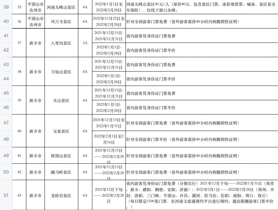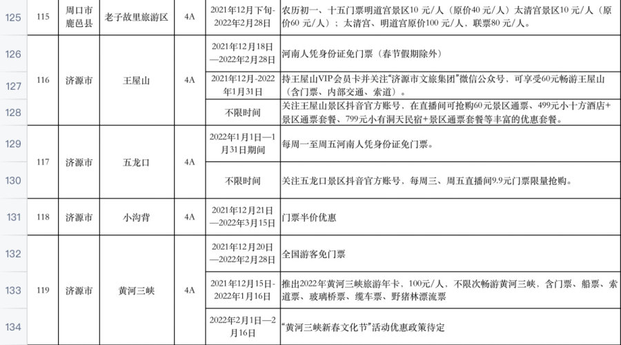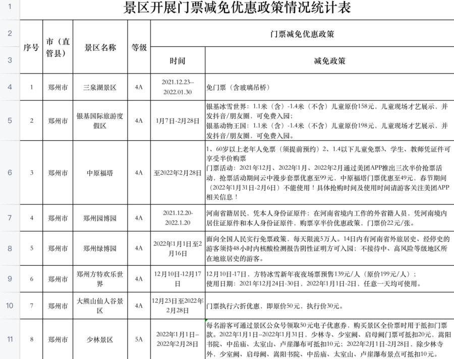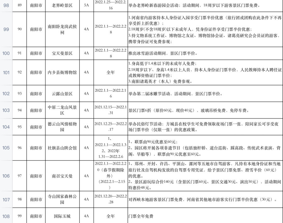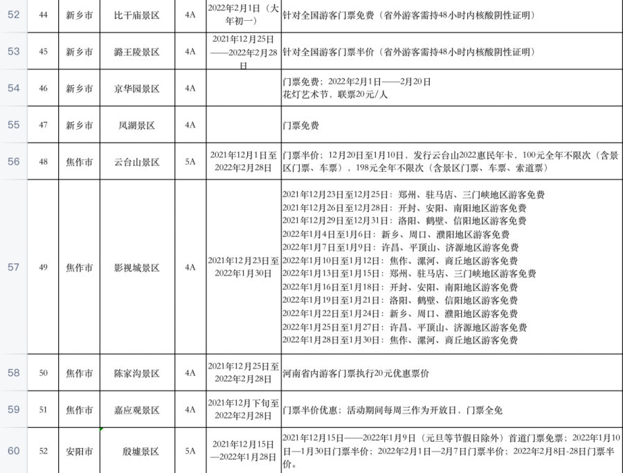 河南百余家景区推出免票或优惠活动