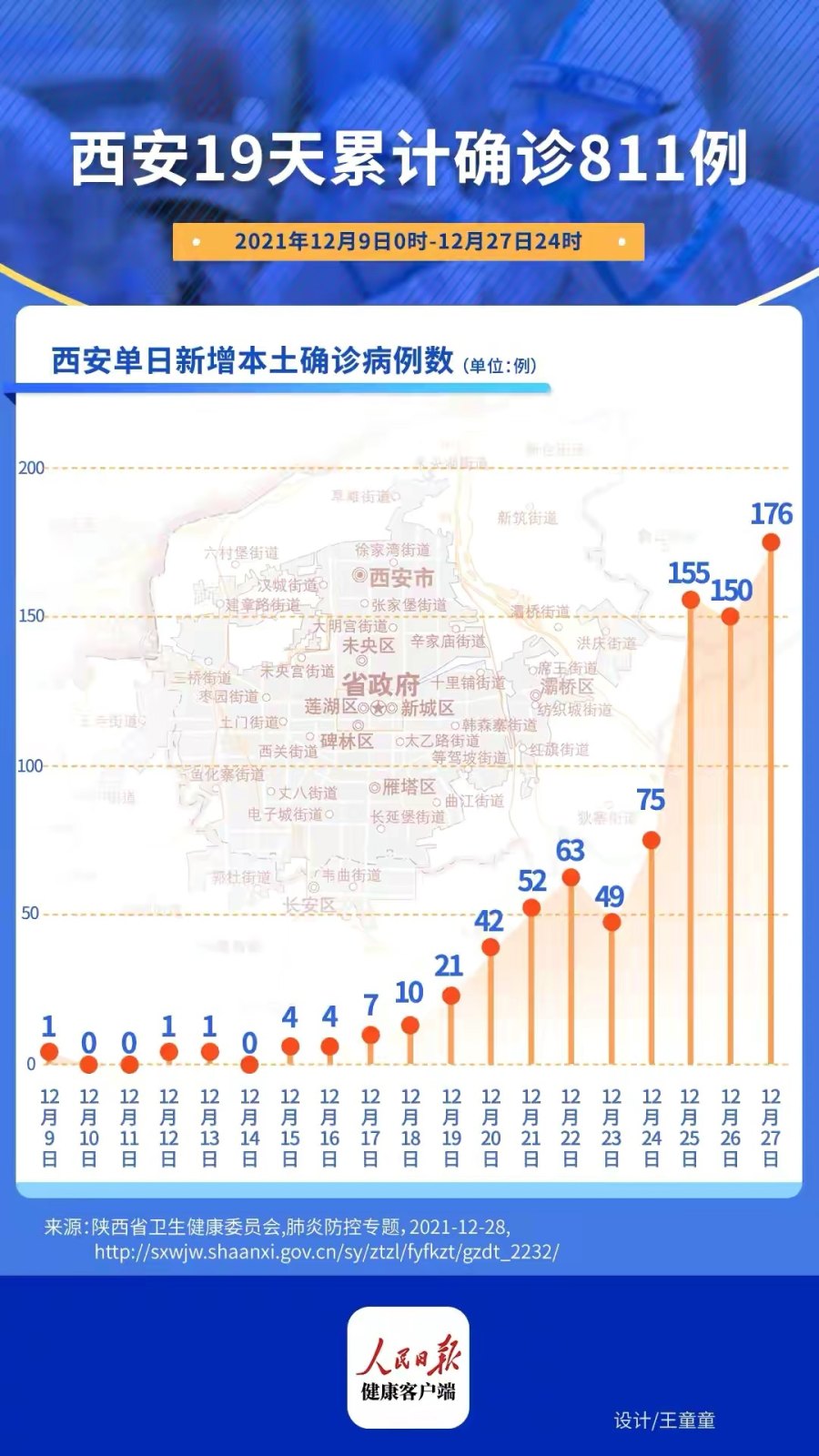 12月25日、26日、27日,陕西省西安市新增确诊病例分别为155例、150例、176例,共确诊481例,已经连续3天突破150例,超过了12月9日-24日确诊病例的总和。其中27日确诊的176例,也创下自12月9日起,西安发生新冠肺炎疫情以来的单日确诊病例数的新高。