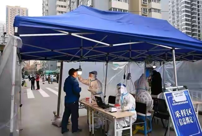 12月27日,在西安市碑林区张家村街道太白社区,居民在接受核酸检测。