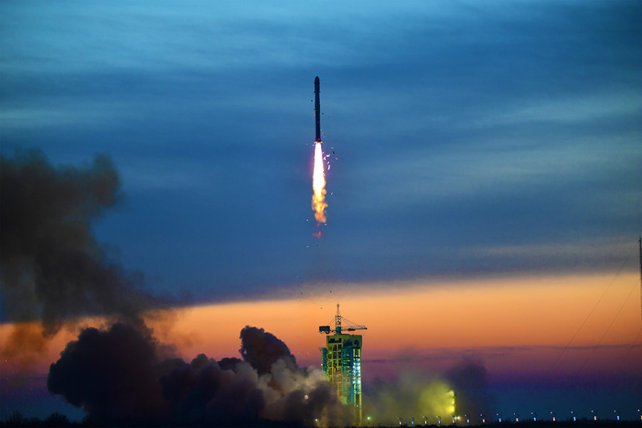 2021年12月10日8时11分,实践六号05组卫星发射升空。 (新华社 汪江波/图)