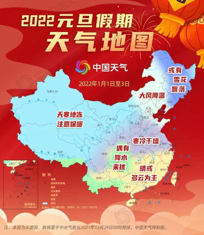 2022年即将到来,新一年开场,我国大部雨雪较少,北方寒冷是主调,南方大部天气回暖,总体比较适宜出行,不过西南等地或有雨雪来扰。