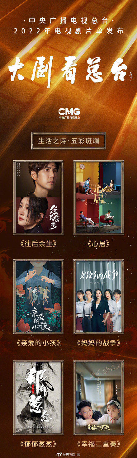 12月29日,据央视新闻消息,拟于2022年登陆总台的电视剧作品发布。