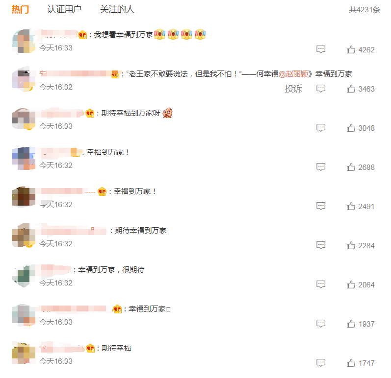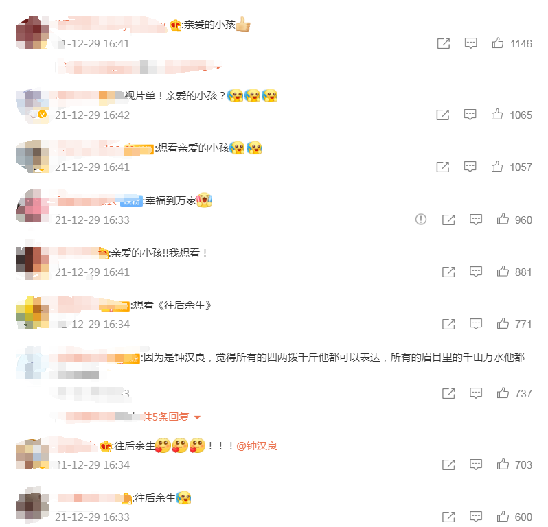 对此,网友纷纷留言自己想看的电视剧片名,目前呼声最高的是《幸福到万家》,不过也有部分网友表示想看《亲爱的小孩》、《往后余生》等。