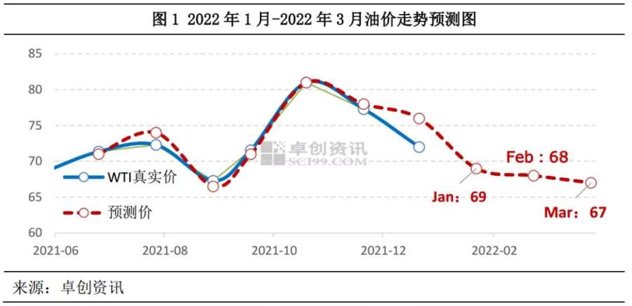 另外,对于中短期国际油价走势,卓创资讯研究团队认为,主要受经济情景、金融(货币)情景、供需情景等三类情景因素影响。该研究团队日前预测,2022年前三个月国际油价(月均价)将逐月回落,每桶分别为69美元、68美元和67美元。