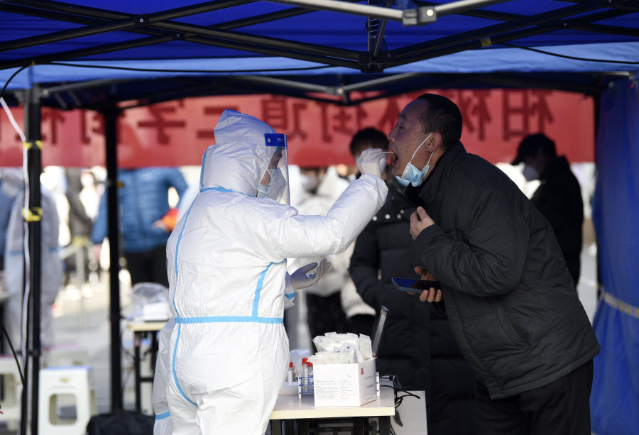 12月17日,市民在西安市碑林区柏树林街道三学街社区核酸检测点进行核酸检测。新华社记者 刘潇 摄