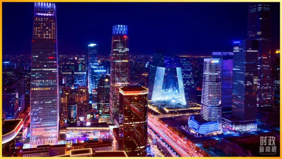 △中国北京CBD,夜景璀璨。(总台央视记者王威拍摄)