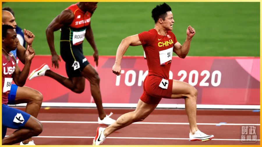 △2021年8月,2020东京奥运会男子100米半决赛,苏炳添以9.83秒的成绩获得小组第一晋级决赛,成为首位闯进奥运男子百米决赛的中国人。(图/视觉中国)