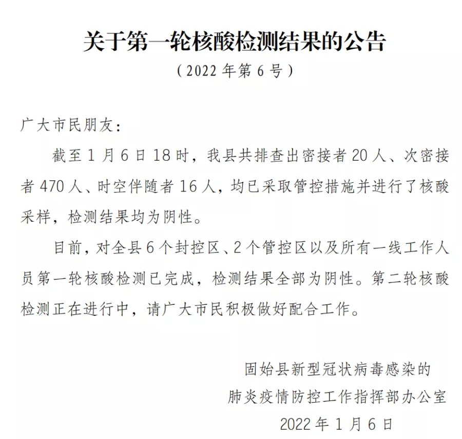 固始第一轮核酸检测结果均为阴性!