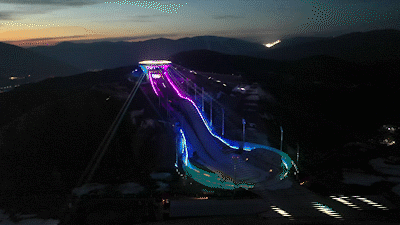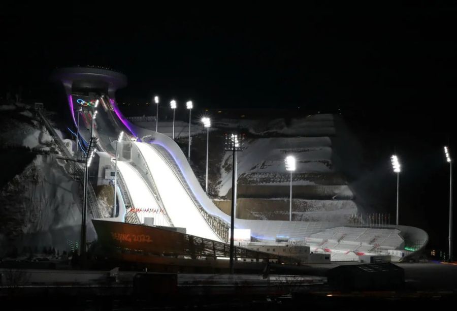 张家口赛区国家跳台滑雪中心夜景(2021年12月31日摄)。新华社记者 杨世尧摄